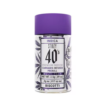 Elevate your pre-roll game. Stiiizy 40s pre-rolls are setting the standard with high potency, cannabis infused joints coated evenly with kief. Using our proprietary live resin infusion methods, we’ve designed every pre-roll to offer 40%+ THC potency with a unique flavor profile. With a smooth inhale and tasteful exhale, each and every Stiiizy 40 is packed with indoor grown flower, specifically made to ensure a potent and long-lasting high. Spark up the 40s. An Indica-dominant strain that comes from Gelato #25 and South Florida OG. Biscotti delivers a powerful body high and delicious flavor.
