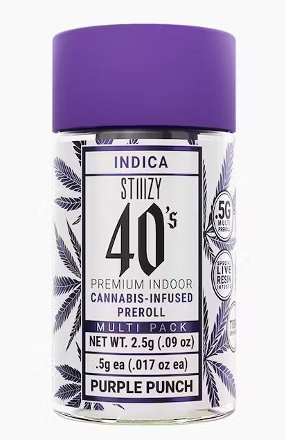 Stiiizy is setting the standard in the pre-roll game with the most revolutionary and innovative products. Elevate your pre-roll game. Stiiizy 40s pre-rolls are setting the standard with high potency, cannabis infused joints coated evenly with kief. Using our proprietary live resin infusion methods, we’ve designed every pre-roll to offer 40%+ THC potency with a unique flavor profile. With a smooth inhale and tasteful exhale, each and every Stiiizy 40 is packed with indoor grown flower, specifically made to ensure a potent and long-lasting high. Spark up the 40s.