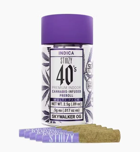 Elevate your pre-roll game. Stiiizy 40s pre-rolls are setting the standard with high potency, cannabis infused joints coated evenly with kief. Using our proprietary live resin infusion methods, we’ve designed every pre-roll to offer 40%+ THC potency with a unique flavor profile. With a smooth inhale and tasteful exhale, each and every Stiiizy 40 is packed with indoor grown flower, specifically made to ensure a potent and long-lasting high. Spark up the 40s.