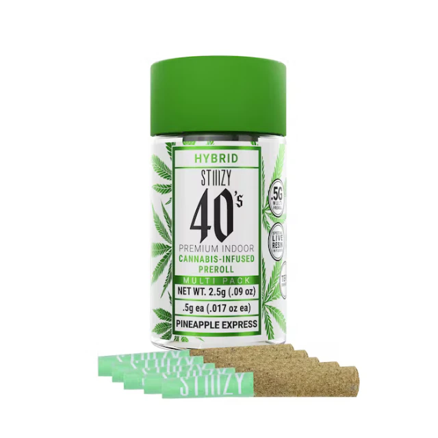 Elevate your pre-roll game. Stiiizy 40s pre-rolls are setting the standard with high potency, cannabis infused joints coated evenly with kief. Using our proprietary live resin infusion methods, we’ve designed every pre-roll to offer 40%+ THC potency with a unique flavor profile. With a smooth inhale and tasteful exhale, each and every Stiiizy 40 is packed with indoor grown flower, specifically made to ensure a potent and long-lasting high. Spark up the 40s.