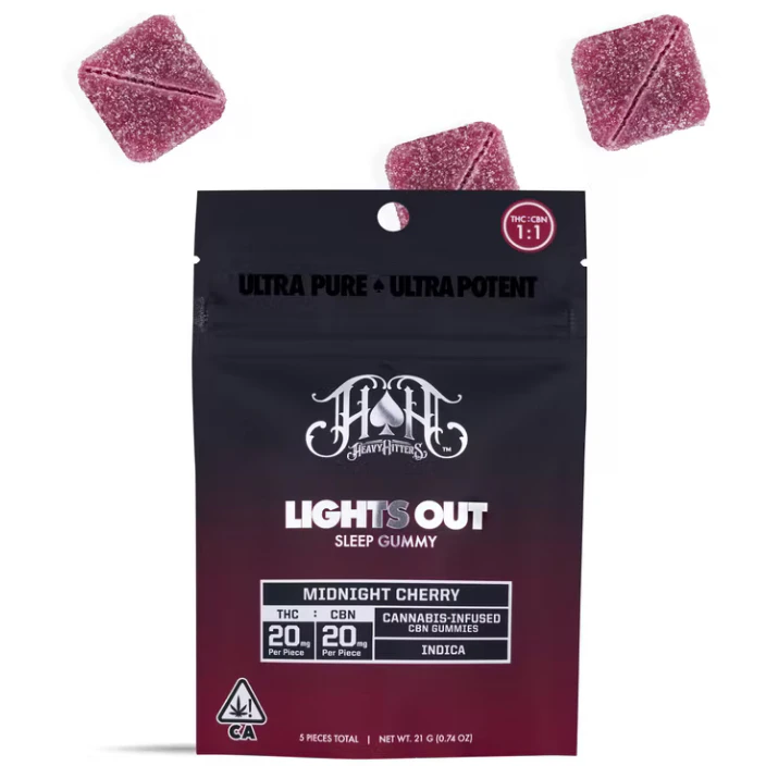 Using a powerful combination of THC and CBN delivered by the velvety flavor of black cherries, Lights Out Midnight Cherry is the undisputed Heavyweight Champion of night-time confections, pummeling you with right hooks of heavy relaxation and always winning with a stunning KO.
