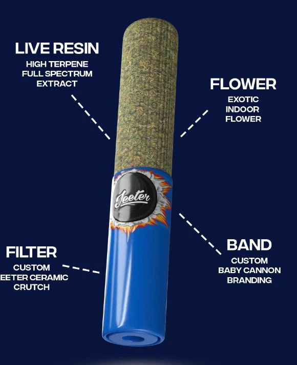 Jeeter's 1.3 grams of infused preroll offers exotic indoor flower with live resin, a full spectrum oil that retains a higher concentration of cannabinoids and terpenes. This unique product combines high-quality live resin and flower strains to create a blend that not only boasts complex flavors but also delivers distinct effects.
