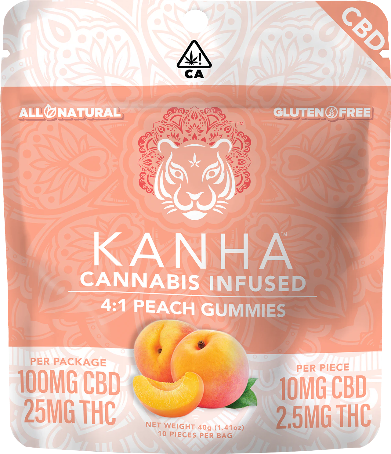 Kanha gummies are made with all-natural ingredients, coloring, and flavoring. Each gummy is infused with the highest quality cannabis oils to provide the most consistent, safe experience on the market. Kanha's Peach 4:1 gummies are delectably sweet and made with 10mg CBD and 2.5mg of THC per gummy. CBD is a non-psychoactive cannabinoid believed to be an medicament agent, natural nighttime formula aid, Compose oneself suppressant, affliction reducer, and more