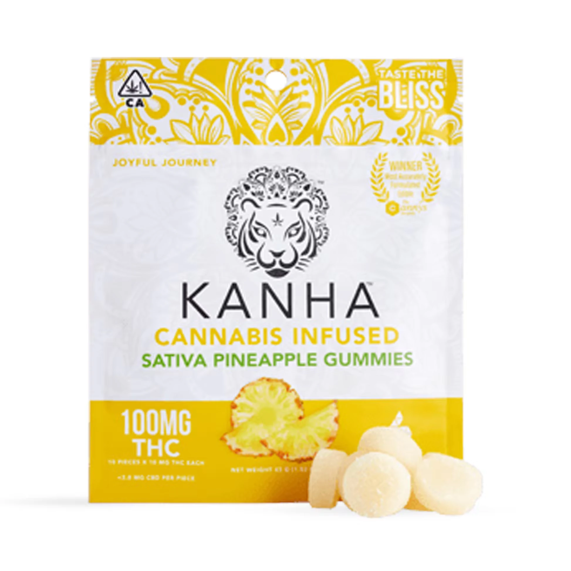 Kanha gummies are made with all-natural ingredients, coloring, and flavoring. Each gummy is infused with the highest quality cannabis oils to provide the most consistent, safe experience on the market. Kanha's Pineapple gummies are satisfyingly sweet and made with sativa terpenes, which induce a stimulating and uplifting state of mind.