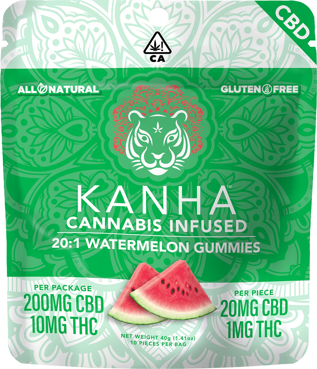 Kanha gummies are made with all-natural ingredients, coloring, and flavoring. Each gummy is infused with the highest quality cannabis oils to provide the most consistent, safe experience on the market. The Watermelon 20:1 gummies are refreshingly juicy and made with 10mg CBD with just a hint of THC per gummy. CBD is a non-psychoactive cannabinoid believed to be an medicament agent, natural nighttime formula aid, Compose oneself suppressant, affliction reducer, and more.