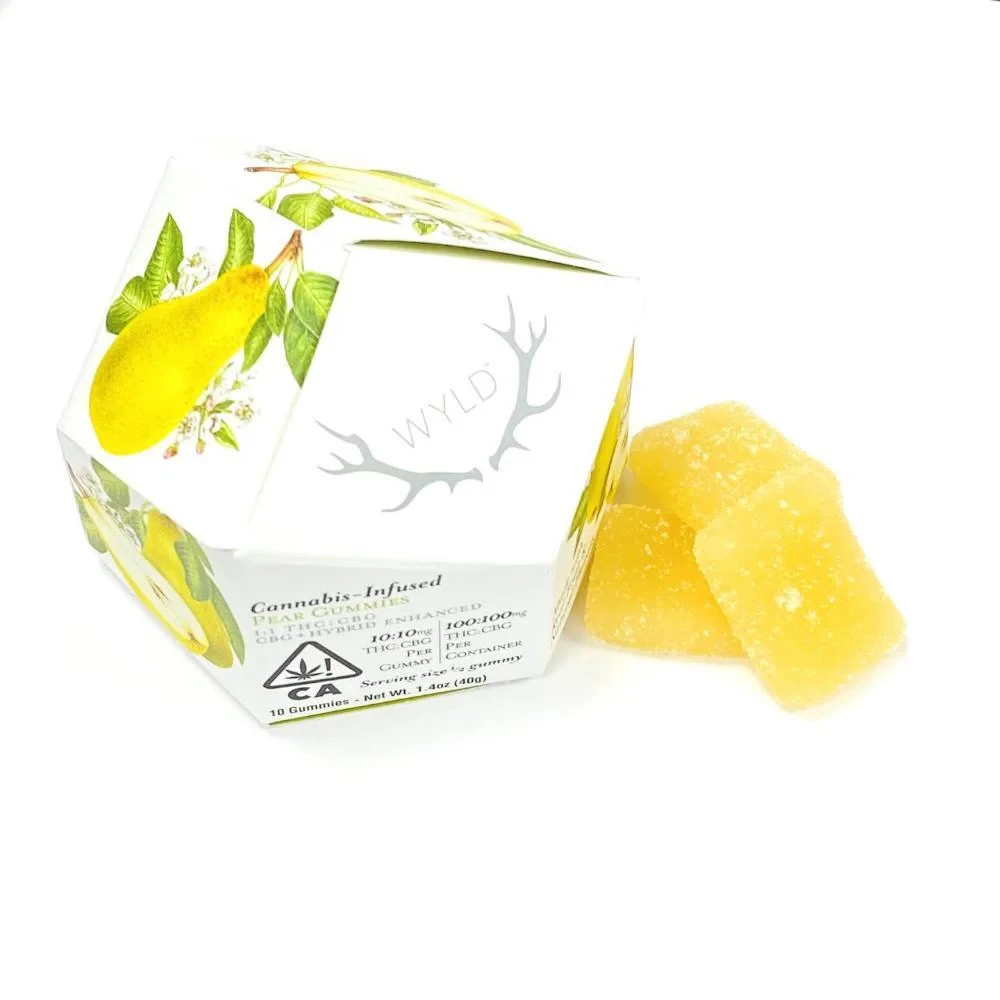 Ingredients: Sugar, Tapioca Syrup, Water, Pear Juice Concentrate, Gelatin, Coconut Oil, Natural Flavoring, Citric Acid, Malic Acid, Pectin (Pectin, Sodium Citrate), Cannabis Extract, Hemp Extract, Sunflower Lecithin